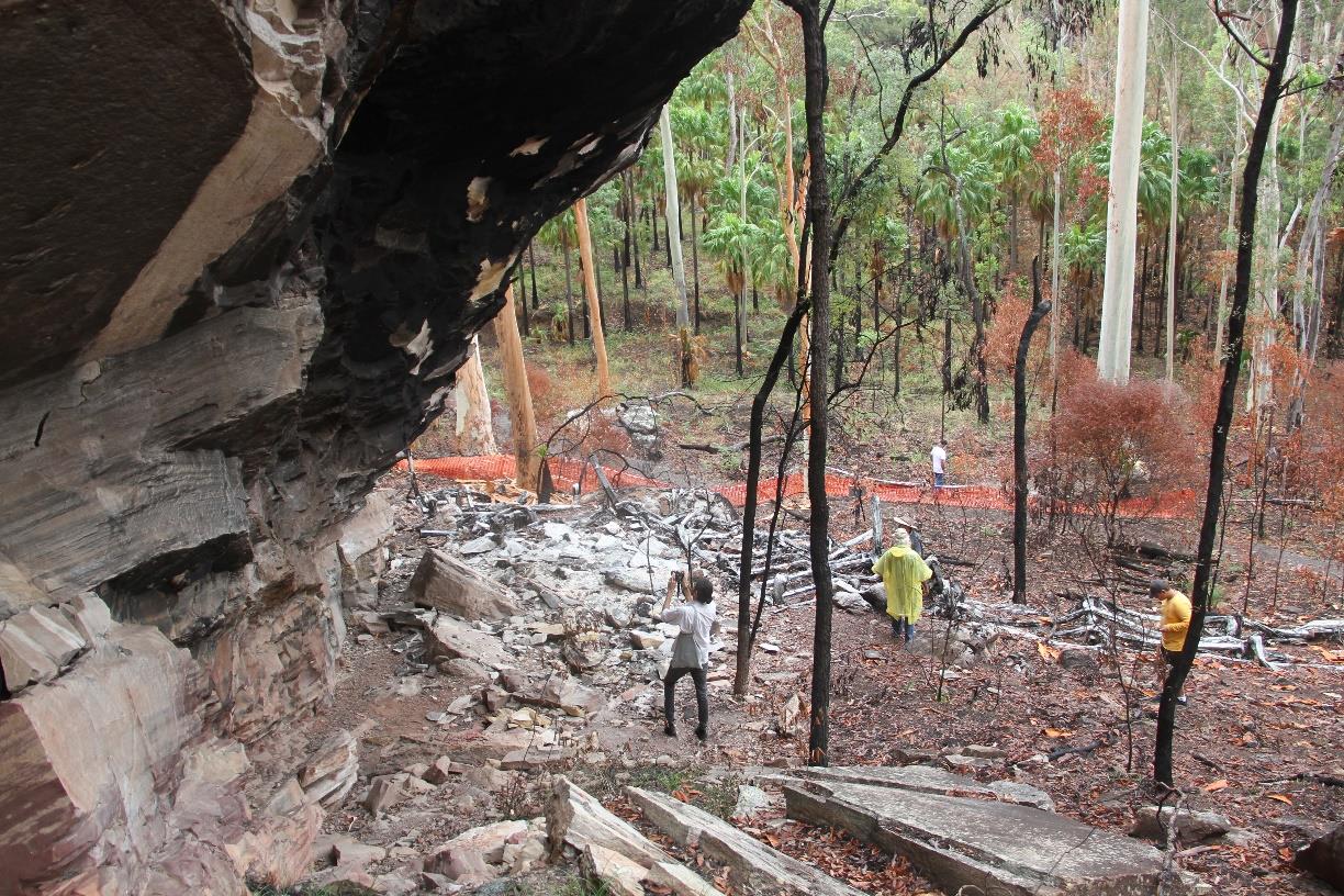 A boardwalk made using a recycled plastic, sold under the name EnduroplankTM, burnt in December 2018 during an out-of-control bushfire. The boardwalk burned with such intensity that it caused massive exfoliation of the rock art surface, destroying and damaging much art. Full report below.