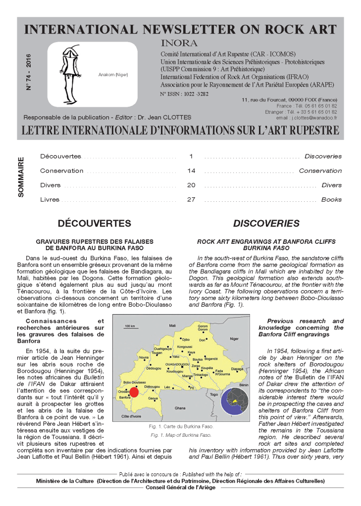 Icomos CAR produces a regular newsletter: The International Newsletter on Rock Art (INORA). It contain details of important news discoveries and new research findings. INORA is edited by a former President of CAR – Professor Jean Clottes. Older issues are available as PDF downloads through this website. For recent issues a subscription is needed.